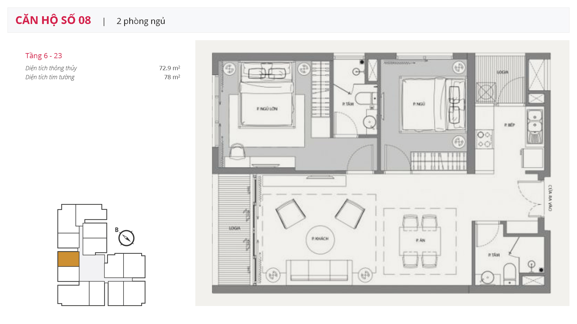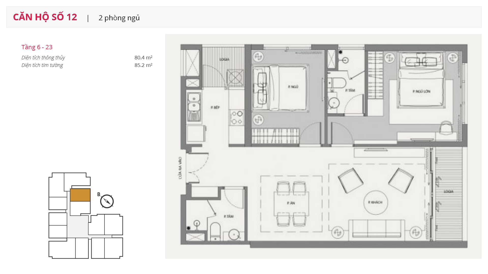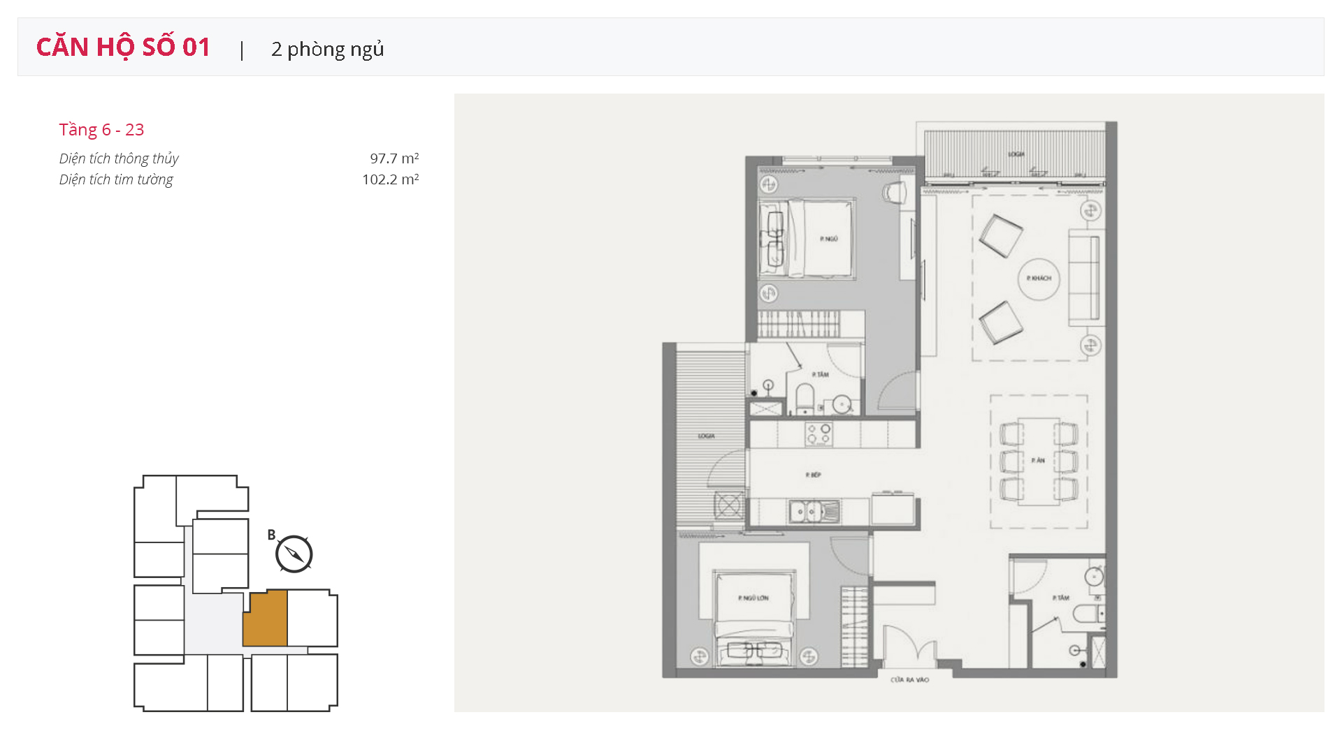Sun Grand City – Ancora Residence - Mặt bằng căn hộ 02 phòng ngủ