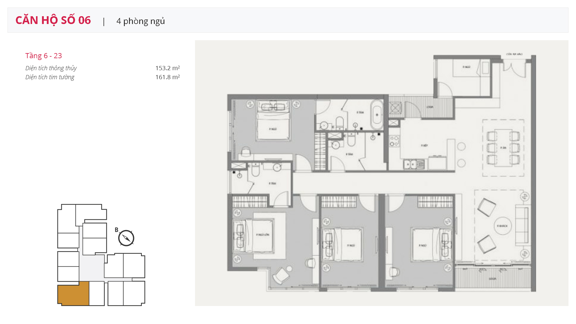 Sun Grand City – Ancora Residence - Mặt bằng căn hộ 04 phòng ngủ