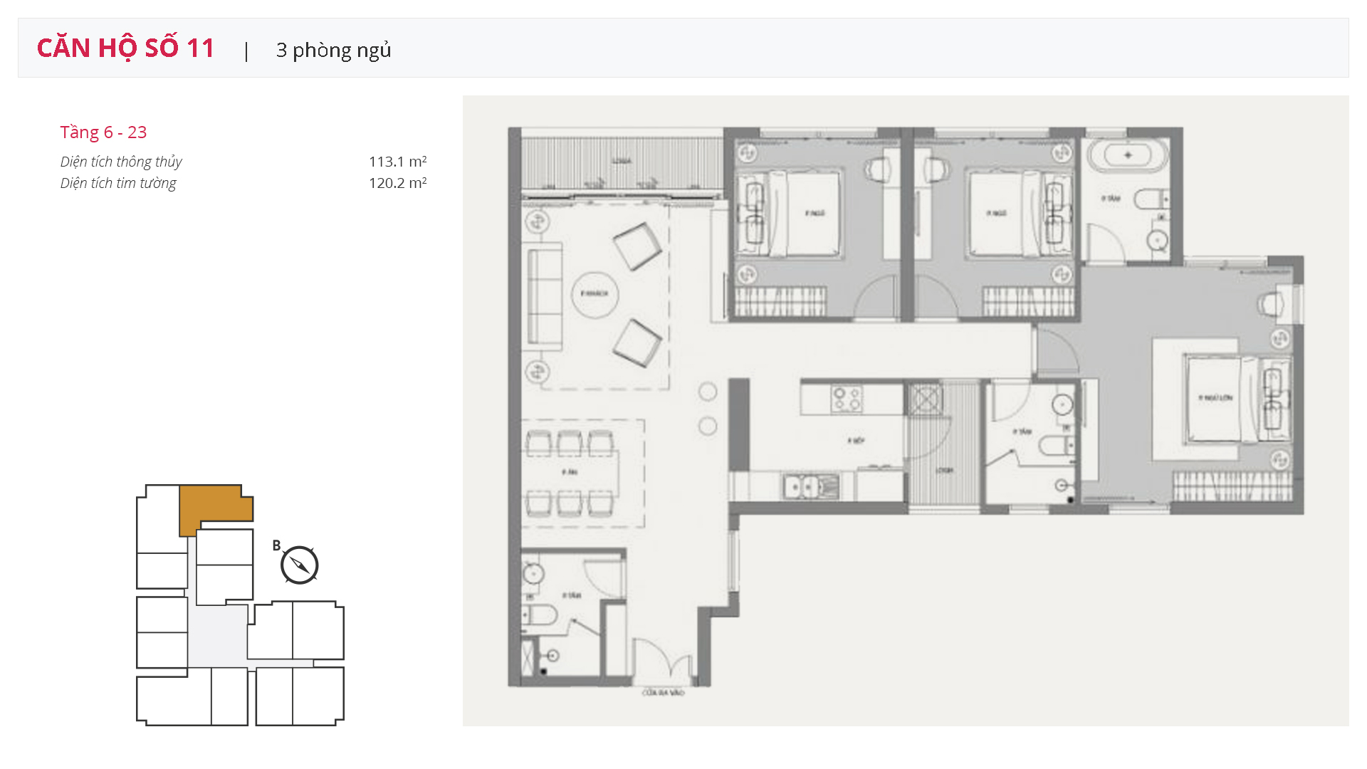Sun Grand City – Ancora Residence - Mặt bằng căn hộ 03 phòng ngủ